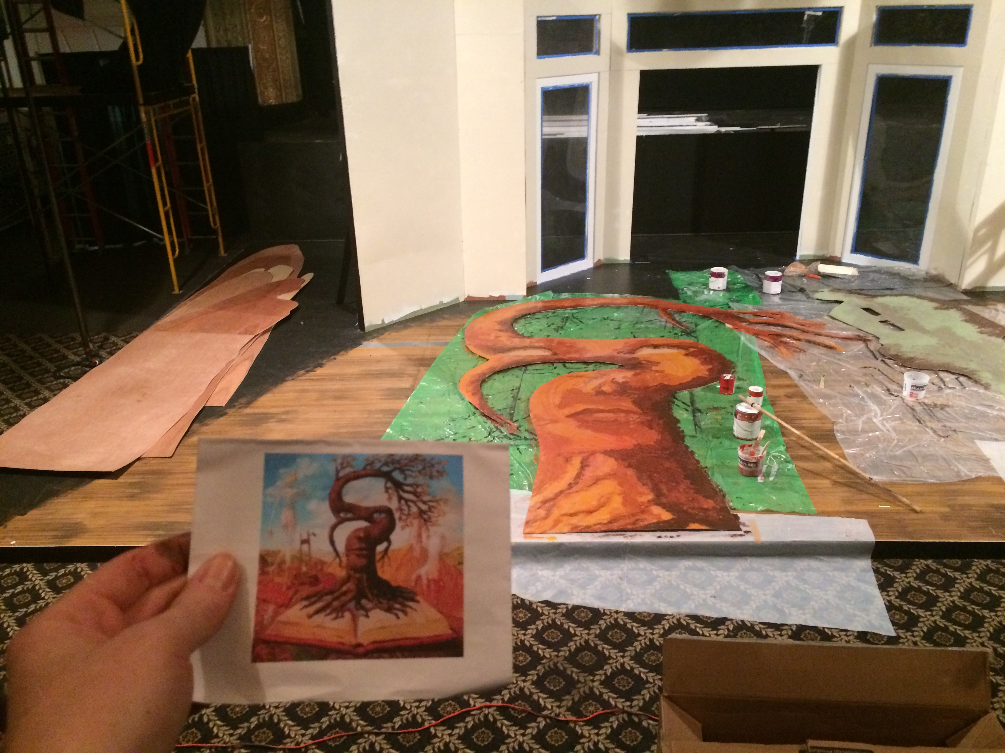 Scenic painting is where it all began for Dyan. Starting with a fine art intention, she found the scale of scenic painting more to her skillset, and is what led to a life long career in theatre. She enjoys creating faux finishes including wood, metal, stone, and linoleum alongside more evocative scenic textures. Dyan is often the scenic paint charge for her scenic designs with area venues, but is also available as a scenic charge to bring your designs to fruition.